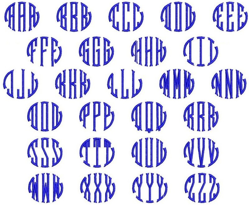 Please refer to these Monogram styles to determine which style will fit your project. The embroidery fonts are shown after the guide. These are the most requested styles. Others are available by request.